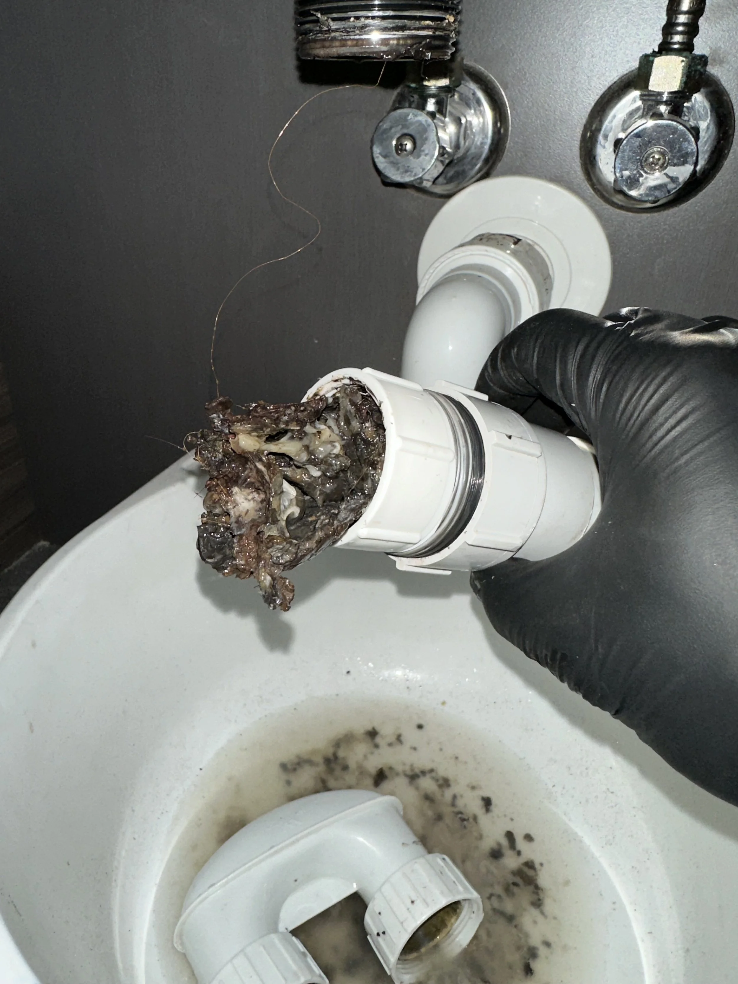 2. Soap Scum & Toothpaste Residue – Over time, soap and toothpaste harden and stick to the pipe walls, narrowing the drain.