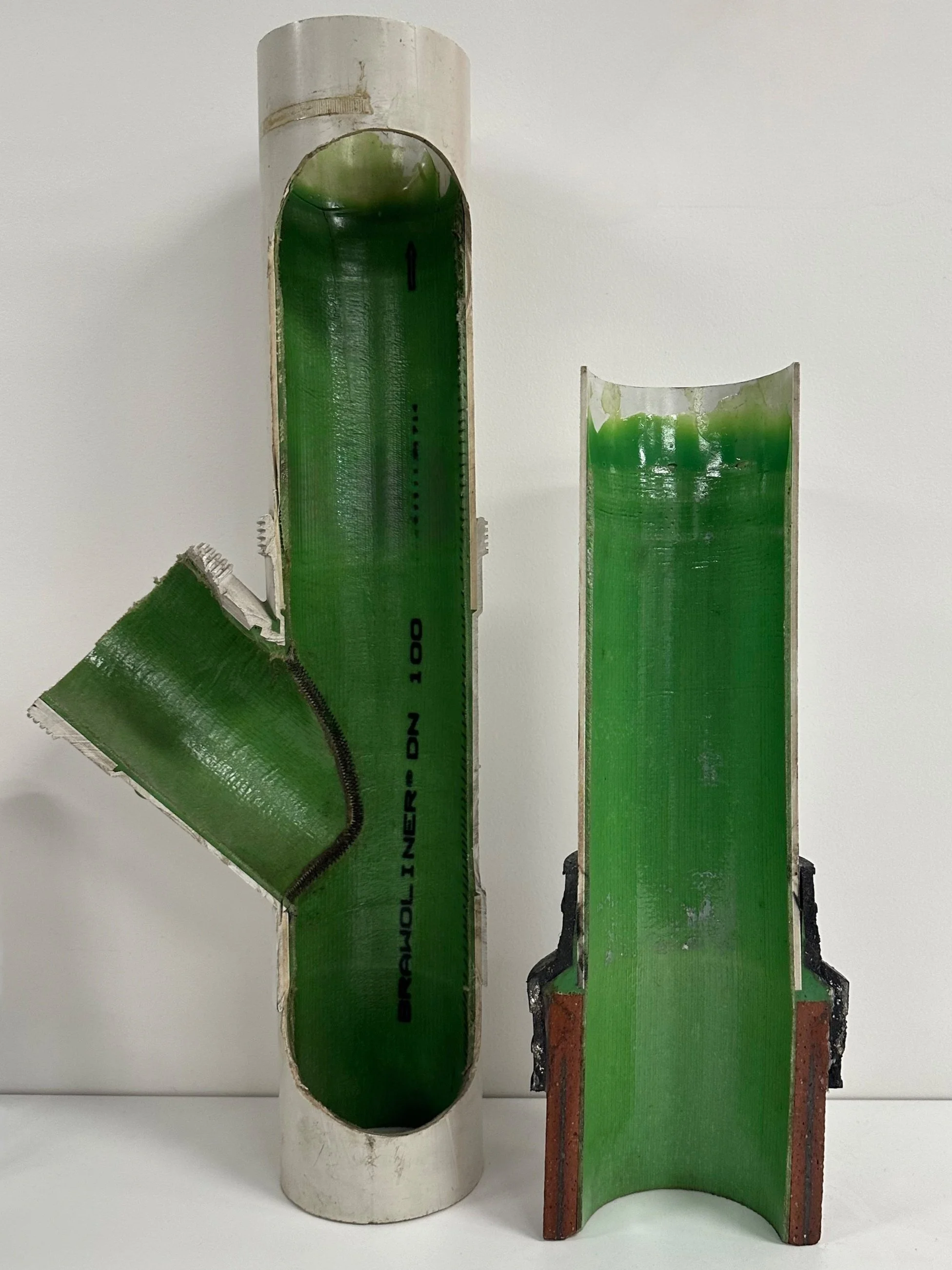 • A flexible resin liner is inserted into the damaged pipe and hardened, creating a new, durable inner lining.